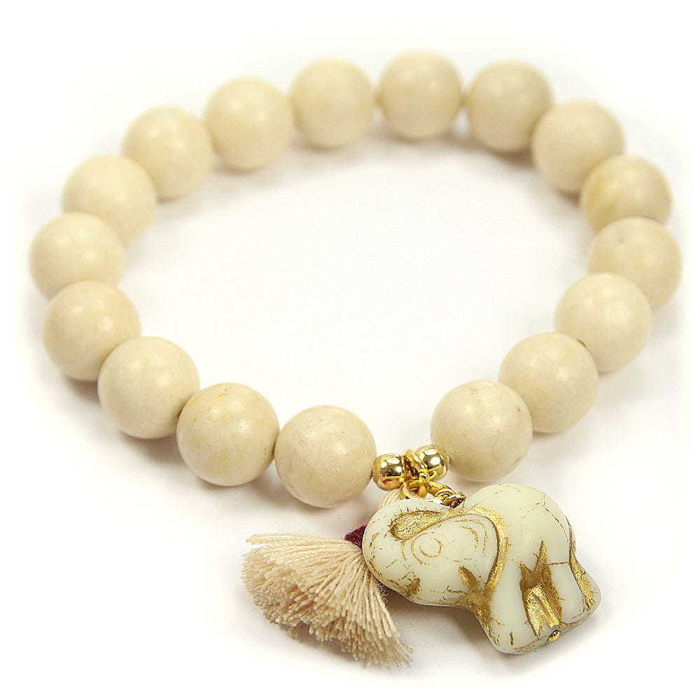 Der fein gearbeitete Elefant ist mehr als ein Schmuckdetail – er gilt als Symbol für Glück, Stärke und Weisheit. Zusammen mit der leichten Stoffquaste entsteht ein harmonisches Design, das Ihrem Handgelenk eine verspielte, aber zugleich bedeutungsvolle Note verleiht.
