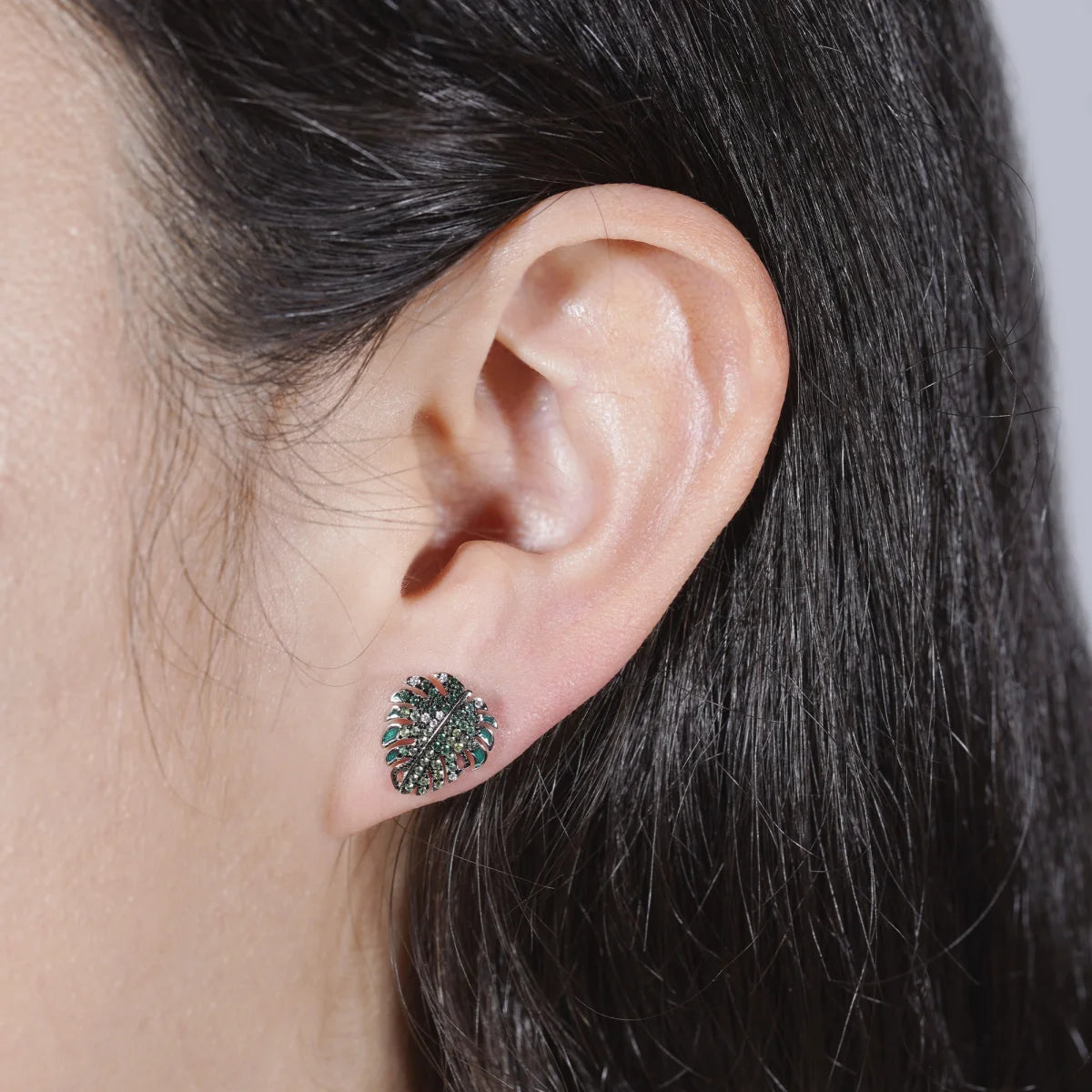 Die kunstvoll gestalteten Monstera-Blätter bringen die üppige Ästhetik tropischer Pflanzen unmittelbar zum Ausdruck. Grüne Emaille verleiht ihnen eine strahlend lebendige Farbigkeit, während funkelnde grüne Zirkonia die natürliche Schönheit eindrucksvoll hervorheben. Das Ergebnis: ein wunderschönes, ausdrucksstarkes Schmuckstück, das Ihre Persönlichkeit mit einer Mischung aus Naturverbundenheit und stilvollem Design unterstreicht.