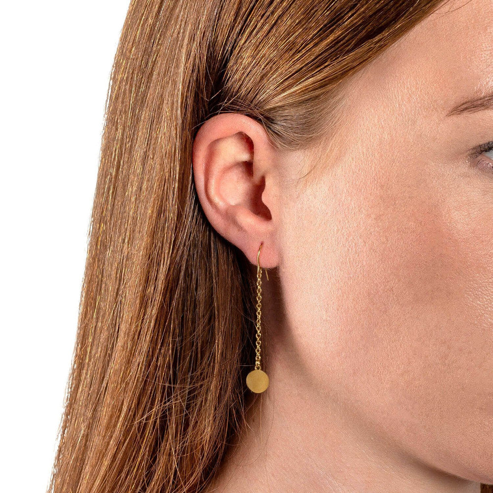 Zarte Ohrhänger mit goldfarbenem Schimmer, die bei jeder Bewegung elegant mitschwingen und feminine Leichtigkeit ausstrahlen.