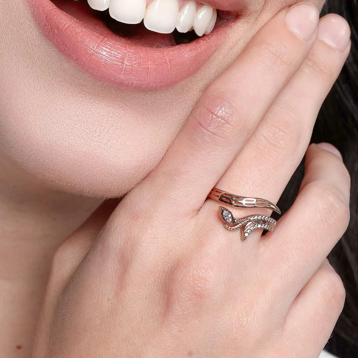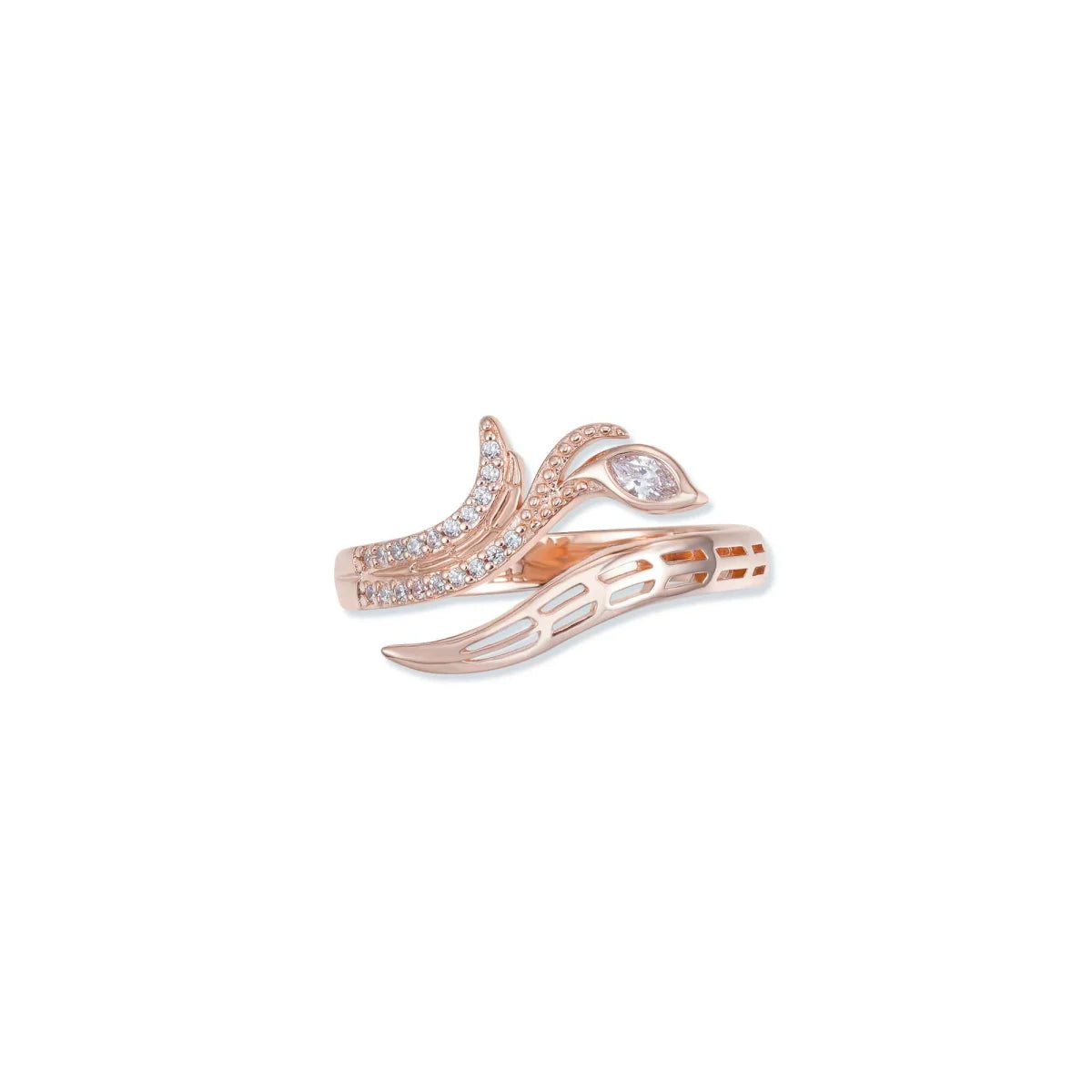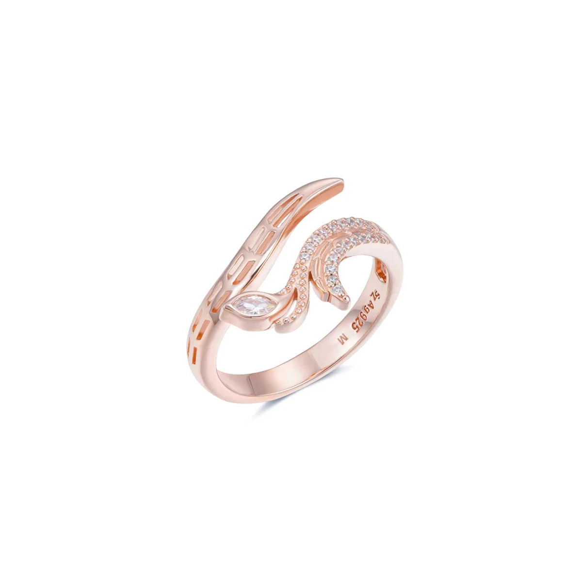 Ein eleganter Ring, der die Kraft des Phönix mit zartem Roségold und funkelnden Details in ein wunderschönes, filigranes Design verwandelt.