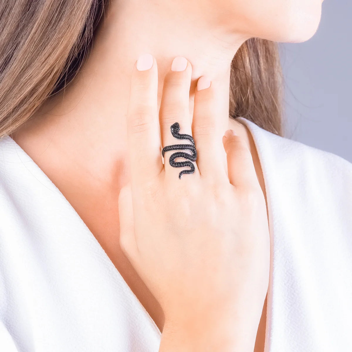Gefertigt aus 925 Sterling Silber, rhodiniert für einen dauerhaft edlen Glanz, schmiegt sich der Ring mystisch und zugleich stilvoll an Ihren Finger. Die geschwärzten schwarzen Zirkonia, die den geschwungenen Schlangenkörper verzieren, verleihen ihm eine geheimnisvolle Tiefe und erzeugen ein hypnotisierendes Funkeln, das pure Aufmerksamkeit anzieht.