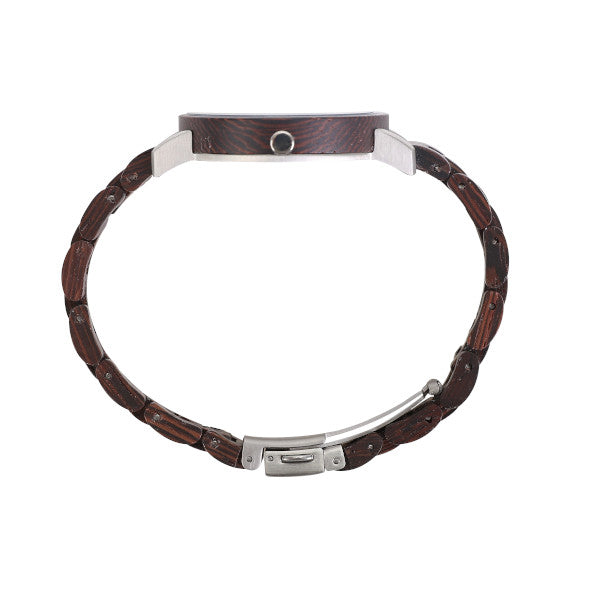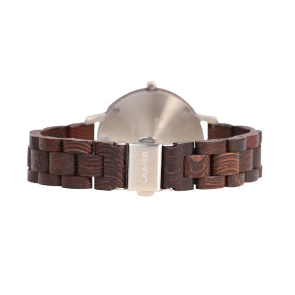 Wengeholz aus nachhaltiger Forstwirtschaft mit rosa Perlmutt-Zifferblatt