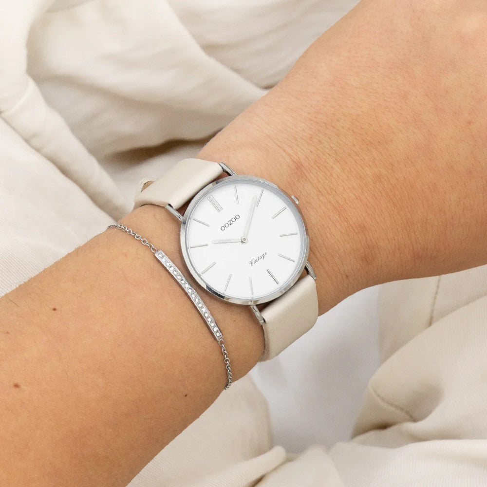 Die OOZOO Damenuhr Vintage Silver C20390 steht für klassische Eleganz und modernes Understatement. Mit ihrem 36 mm großen silberfarbenen Gehäuse und dem weißen Zifferblatt bringt sie stilvolle Leichtigkeit an Ihr Handgelenk – perfekt kombinierbar zu Business-Looks, Freizeit-Outfits oder besonderen Anlässen.