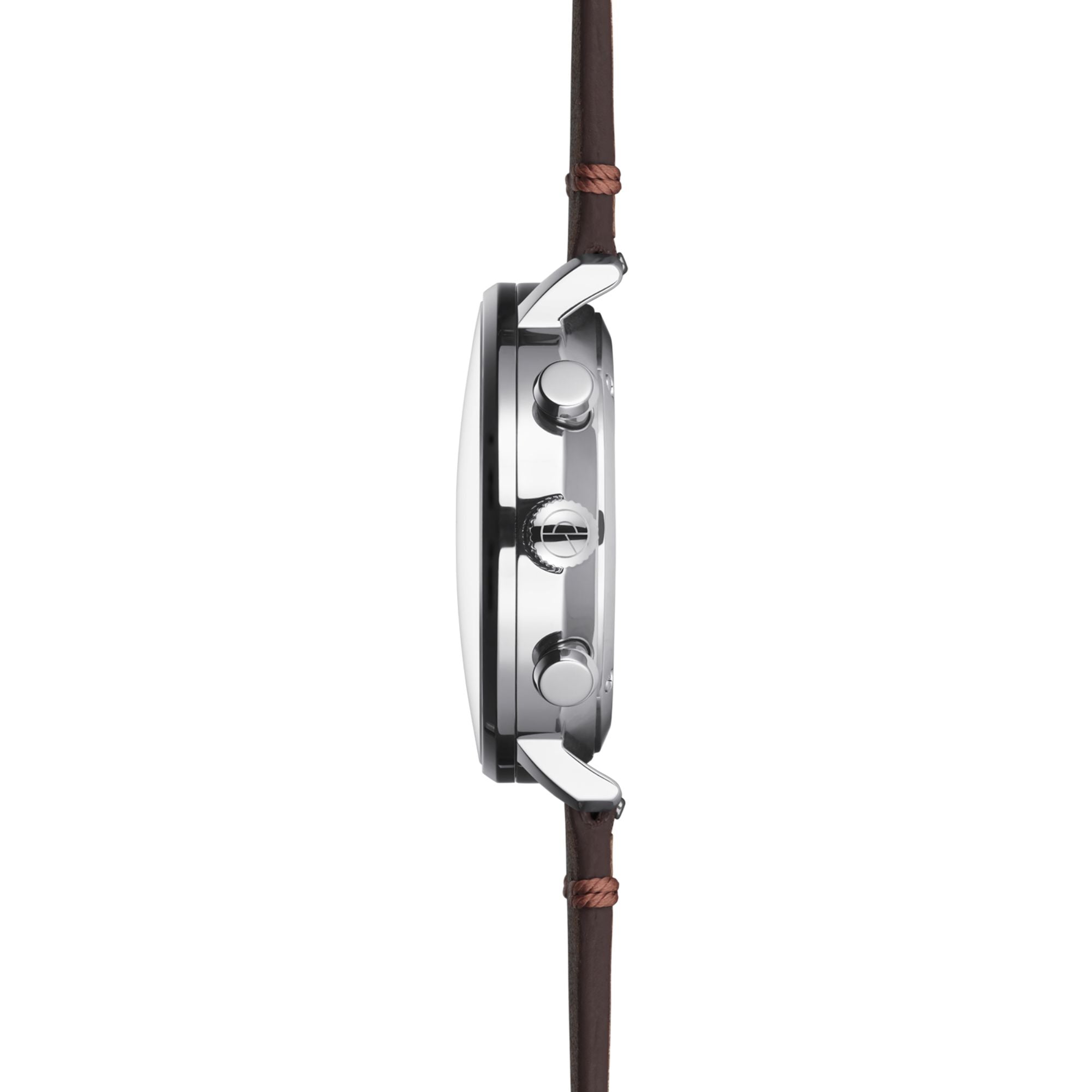 Mit einem Durchmesser von 42 mm und nur 9,5 mm Gehäusehöhe trägt sich die Uhr angenehm im Alltag. Das Armband aus echtem Rindsleder in Vintage Mokka unterstreicht den klassischen Charakter und lässt sich dank Schnellwechsel-System jederzeit variieren.