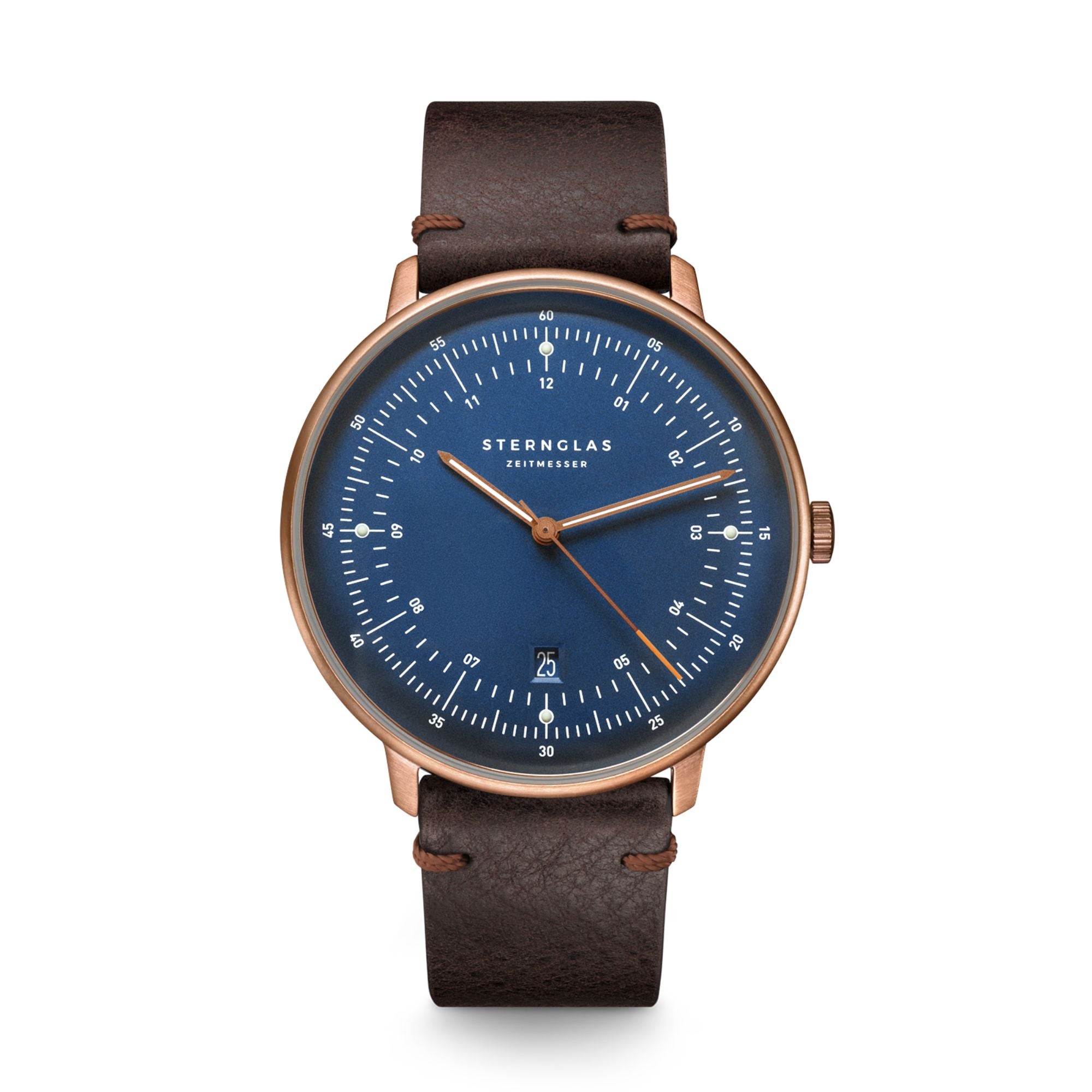 Herrenuhr Quarz "Hamburg" Dunkelblau Bronze Vintage Mokka • Sternglas