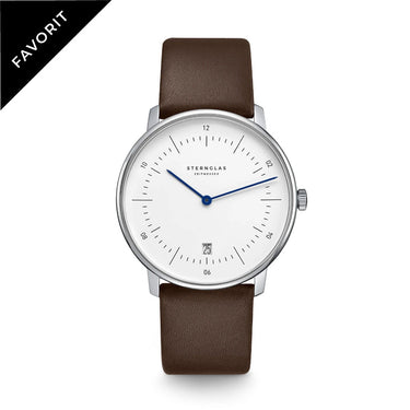 Herrenuhr Quarz "Naos" Weiß Silber Premium Dunkelbraun • Sternglas