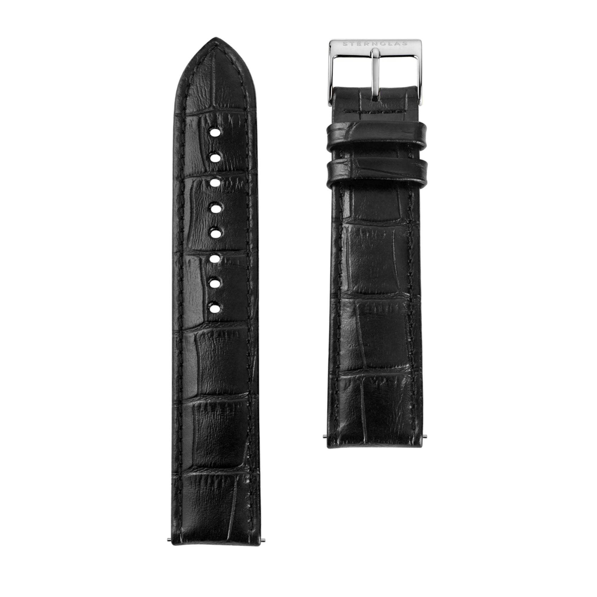 Das Wechselarmband Heritage 20 von Sternglas vereint klassischen Stil mit höchstem Tragekomfort. Gefertigt aus edlem Rindsleder mit eleganter Alligatorenprägung, strahlt es eine zeitlose Eleganz aus, die jede Uhr sofort aufwertet.