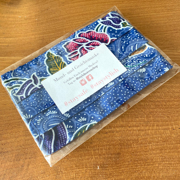 Trage Verantwortung! Mit der handgefertigten, wiederverwendbaren Mund- und Nasen-Maske "Blue Batik" - vom Münchner Label Style Heaven.