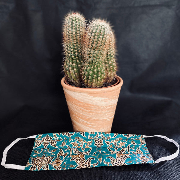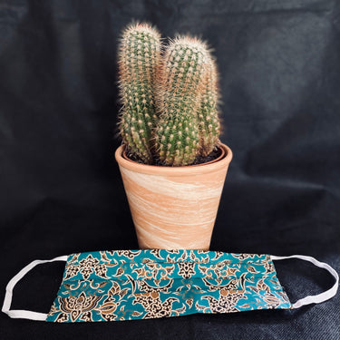Trage Verantwortung! Mit der handgefertigten, wiederverwendbaren Mund- und Nasen-Maske "Türkis Gold Batik" - vom Münchner Label Style Heaven.