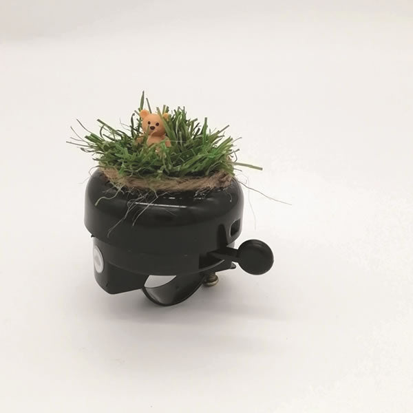 Mit der Fahrradklingel »Teddy« von DUDERINO holen Sie sich Kindheitserinnerungen und gute Laune direkt an Ihren Lenker. „Hugo“, der kuschelige Teddybär, lugt fröhlich aus seinem grünen Kunstrasen-Versteck und begleitet Sie bei Sonne, Regen oder Wind – immer bereit, ein Lächeln zu schenken.