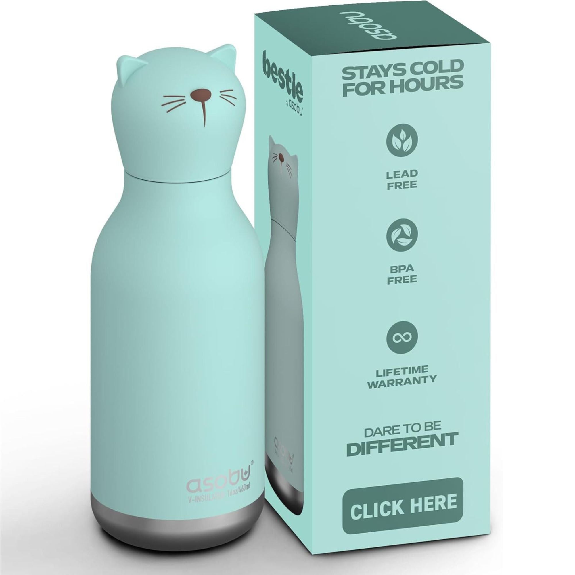 Bestie Trinkflasche – Katze "Kiki" Türkis • ASOBU