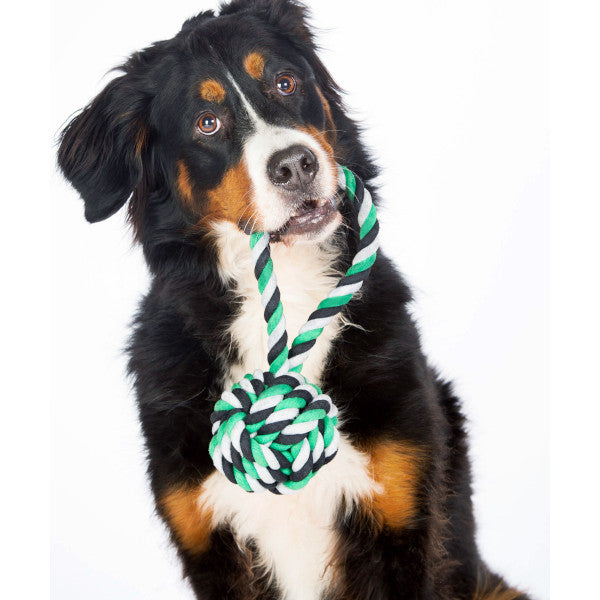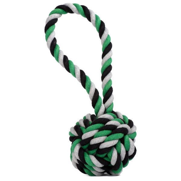 Ein Spielzeug, das Gesundheit, Spaß und Design vereint: Der Maxi Schleuderball Grau-Grün-Schwarz von LABONI begeistert Vierbeiner und Halterinnen wie Halter gleichermaßen. Gefertigt aus zahnpflegendem Baumwolltau, reinigt er die Zähne auf spielerische Weise und befriedigt gleichzeitig das natürliche Kaubedürfnis Ihres Hundes.