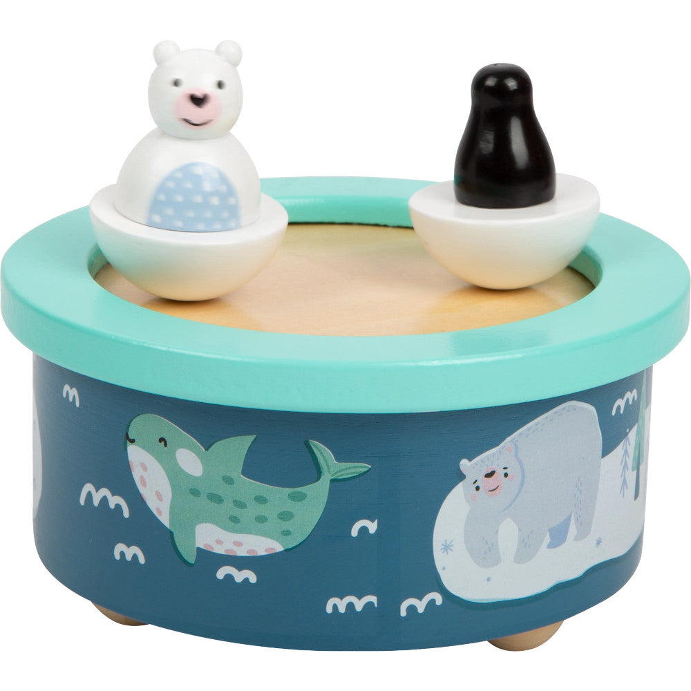 Sanfte Klänge, niedliche Figuren und arktischer Zauber – eine Spieluhr, die Kinderträume sanft begleitet.