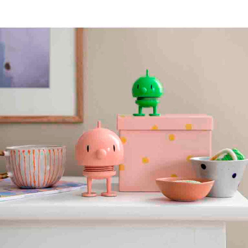 Ein sanfter Tipp auf den Kopf genügt, und Bumble hüpft fröhlich auf und ab – ein spielerischer Moment, der sofort für ein Lächeln sorgt. Ob als Eyecatcher auf dem Schreibtisch, im Regal oder als liebevolles Geschenk: Der Hoptimist erinnert uns jeden Tag daran, das Leben positiv zu sehen.