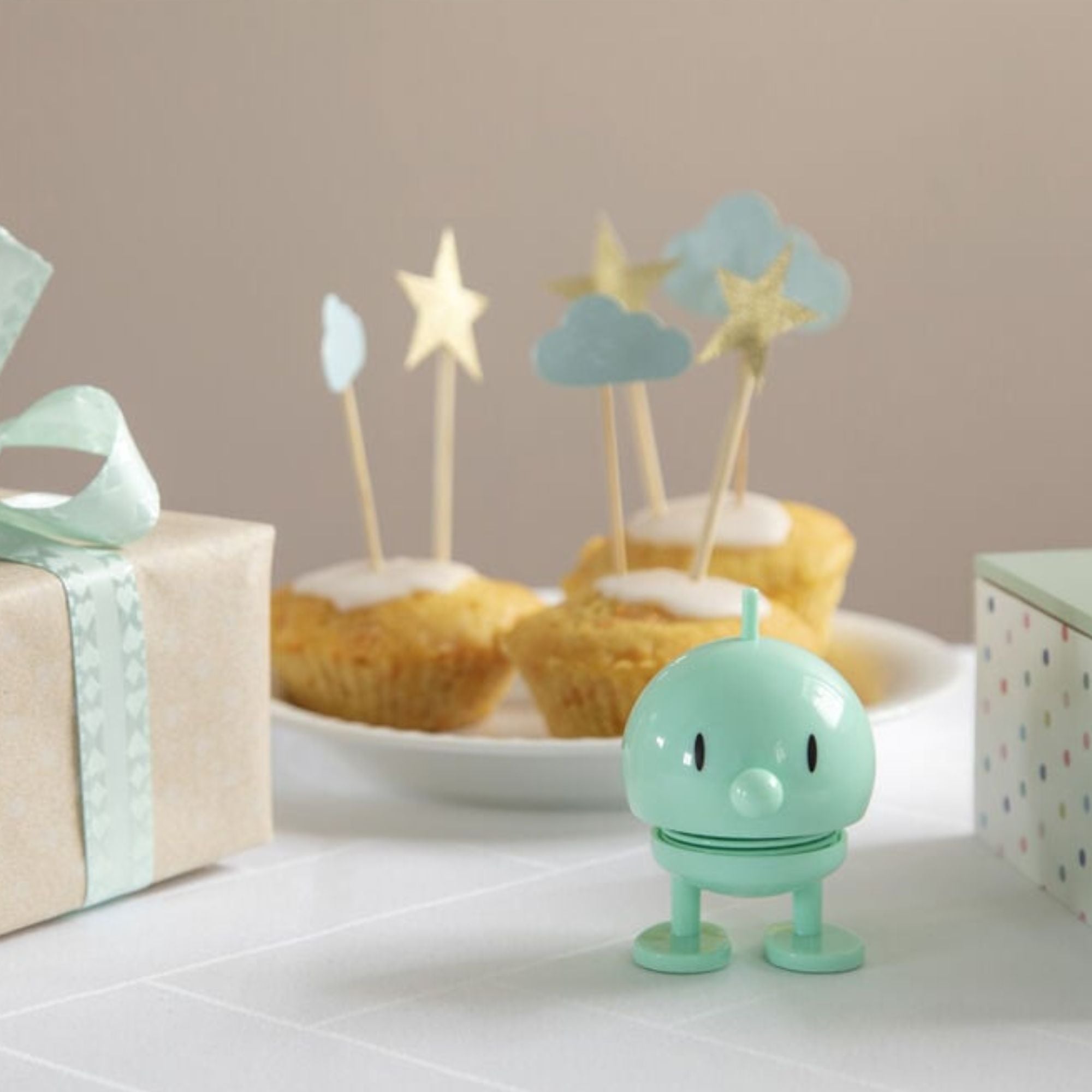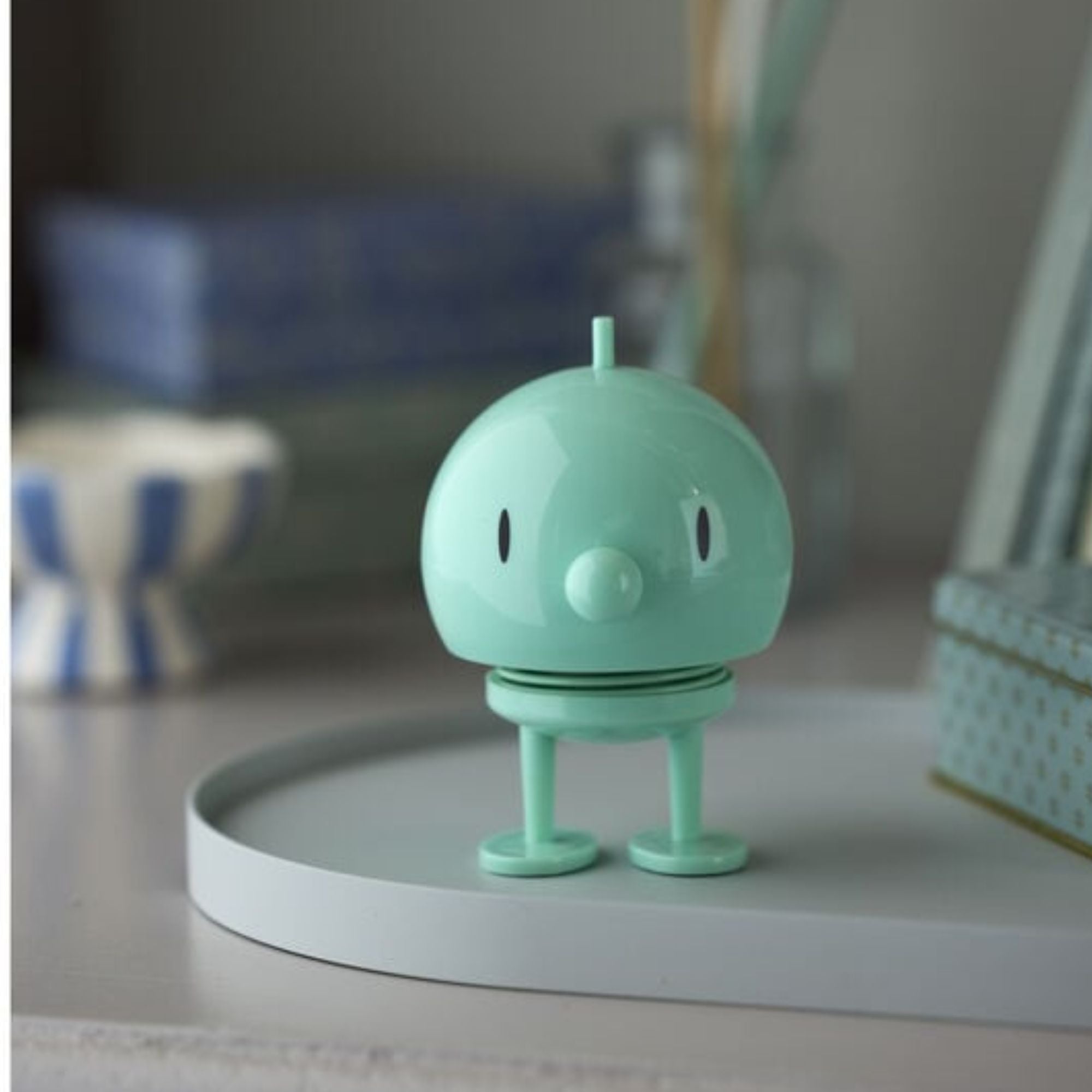 Ein kleiner Tipp auf den Kopf genügt, und Bumble beginnt zu hüpfen – ein spielerischer Moment, der sofort ein Lächeln zaubert und gute Laune verbreitet. Als dekoratives Detail auf dem Schreibtisch, im Regal oder als Geschenk ist dieser Hoptimist mehr als eine Figur: Er ist eine Erinnerung daran, das Leben optimistisch zu betrachten.