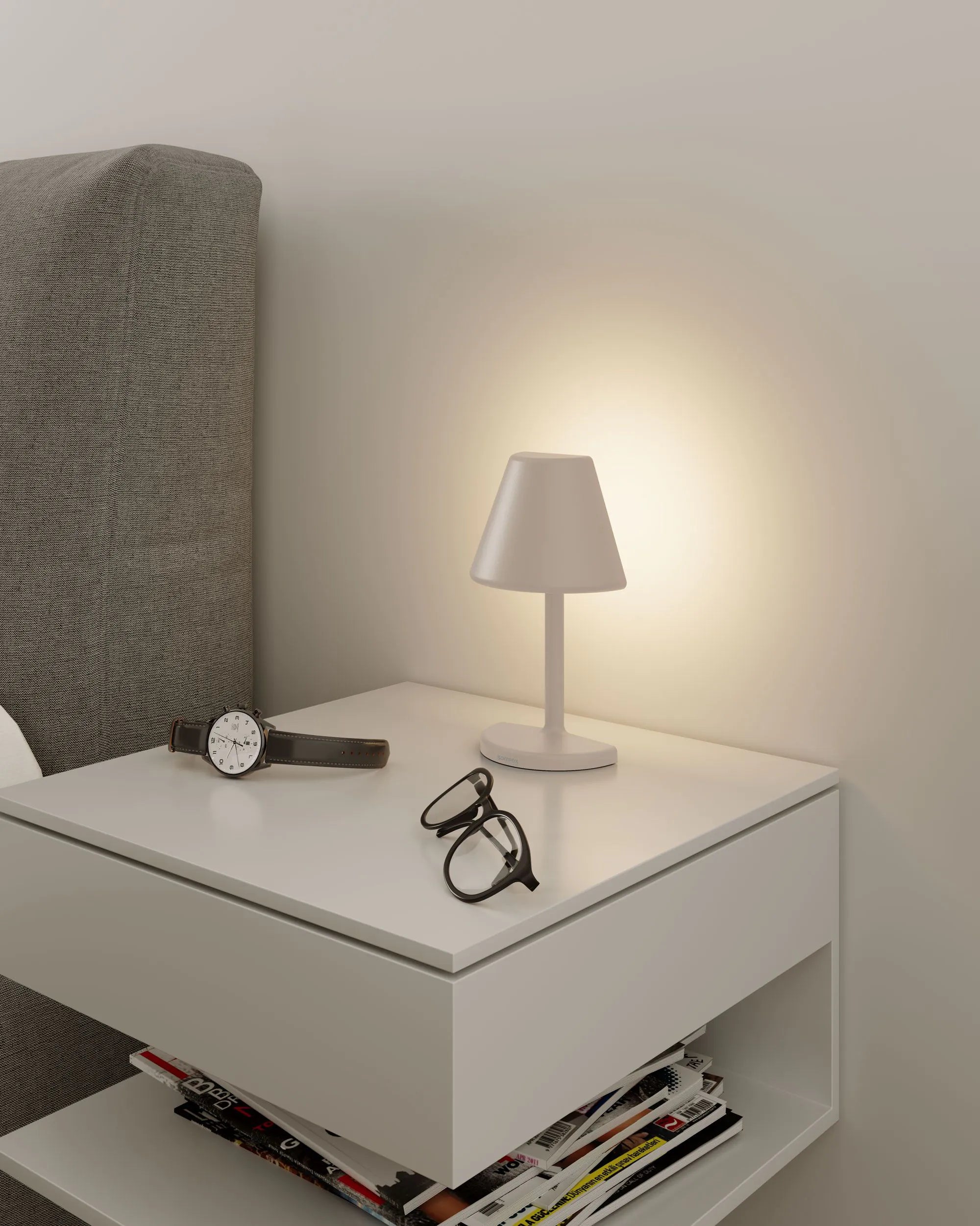 Die integrierte LED-Technologie bietet zwei wählbare Lichtfarben (2700K & 3000K) und lässt sich stufenlos per Touchdimmer regulieren – inklusive Memory-Funktion für Ihren Lieblingsmodus. Dank leistungsstarkem Lithium-Ionen-Akku genießen Sie bis zu 10 Stunden kabellose Lichtmomente, bevor die Leuchte bequem per USB-Kabel wieder aufgeladen wird.