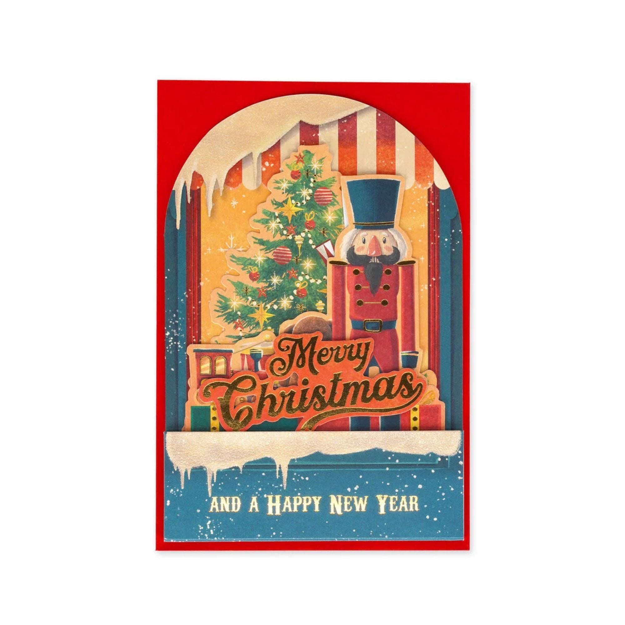 3D-Pop-up-Motiv mit weihnachtlichem Schaufenster, Tannenbaum und Nussknacker