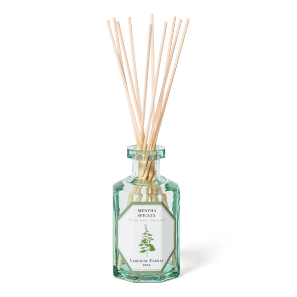 Die Frische der Minze belebt und entfaltet ihre sportliche Würze mit dem edlen Parfüm-Diffuser von Carrière Frères 1884.