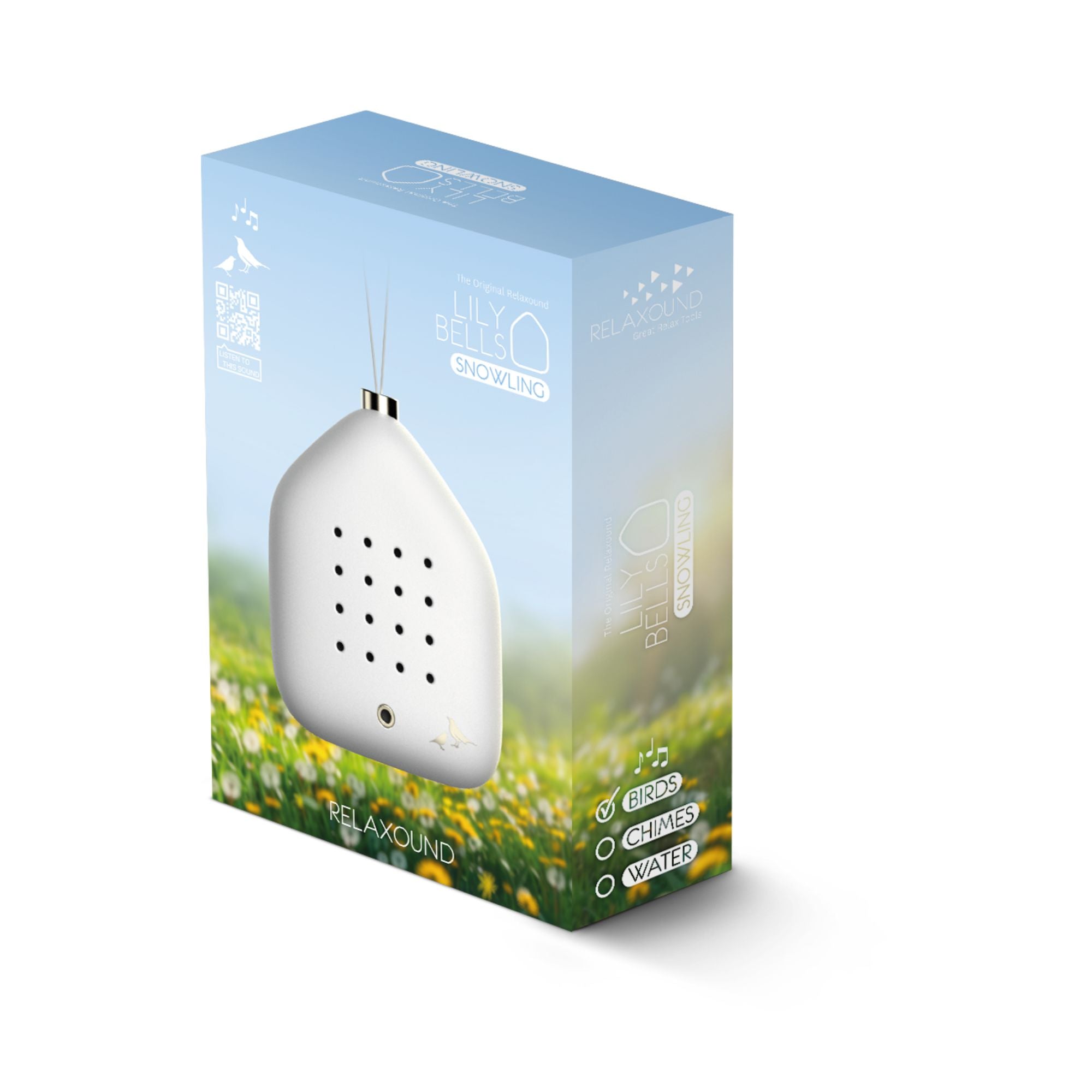 Die Relaxound Lily Bells Snowling ist eine von vier liebevoll gestalteten Varianten und verzaubert als einzigartiges Premium Klangobjekt mit den schönsten Stimmen des Frühlings. Amsel, Rotkehlchen, Zaunkönig, Kohlmeise und weitere heimische Vögel erklingen in kurzen, natürlichen Solos – klar, lebendig und von höchster Qualität.