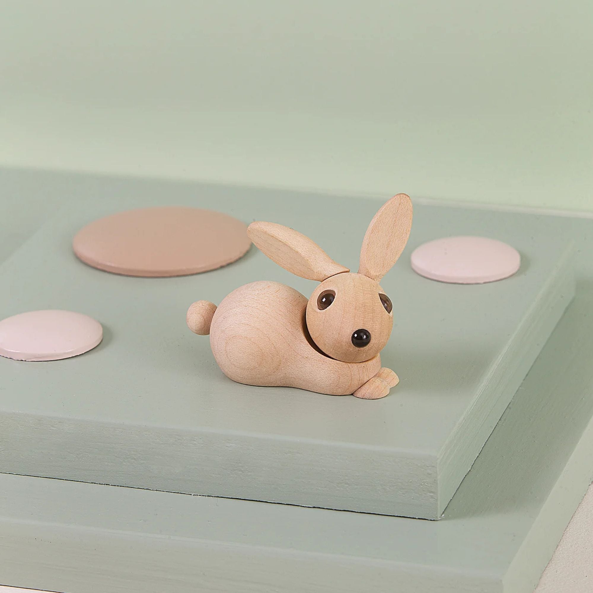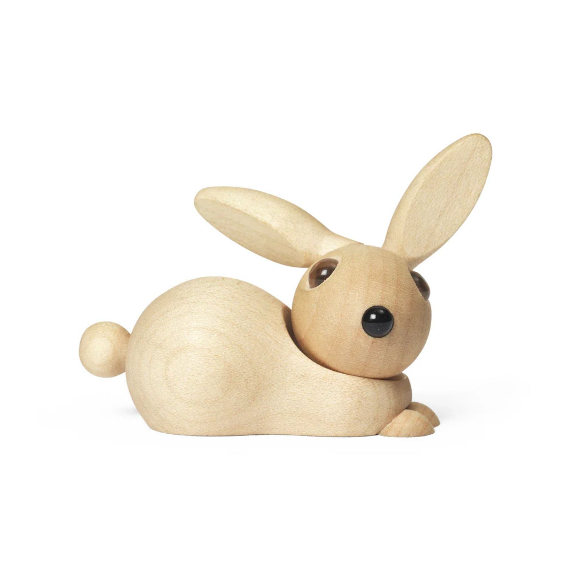 Das liebevoll gestaltete Häschen aus edlem Ahornholz bringt Leichtigkeit, Wärme und ein Lächeln in jeden Raum. Mit ihren ausdrucksstarken Augen, den beweglichen langen Ohren und dem niedlichen Schwänzchen wirkt Bell lebendig und verspielt – fast so, als würde sie jeden Moment losspringen.