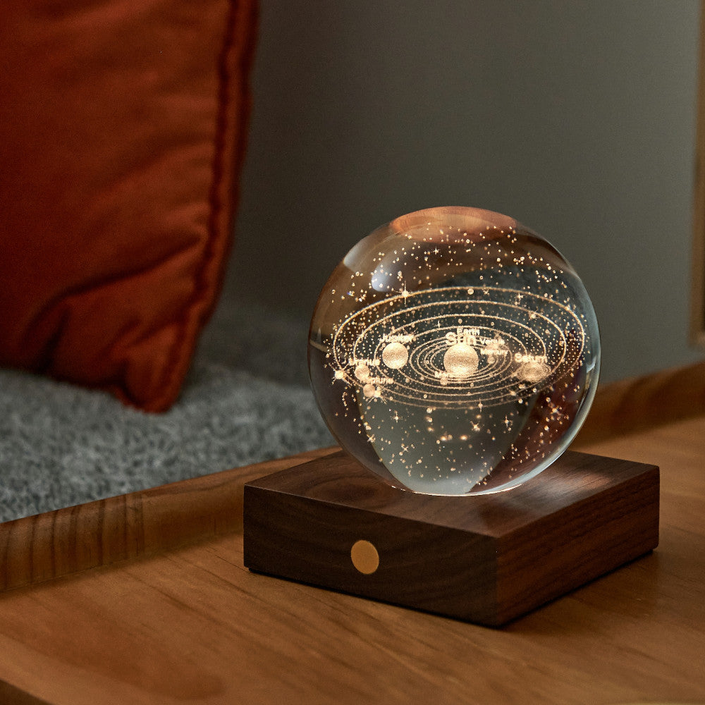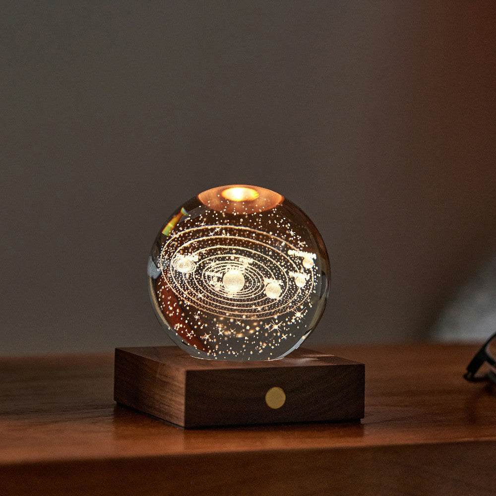 Kristallkugel mit 3D-Lasergravur „Sonnensystem“