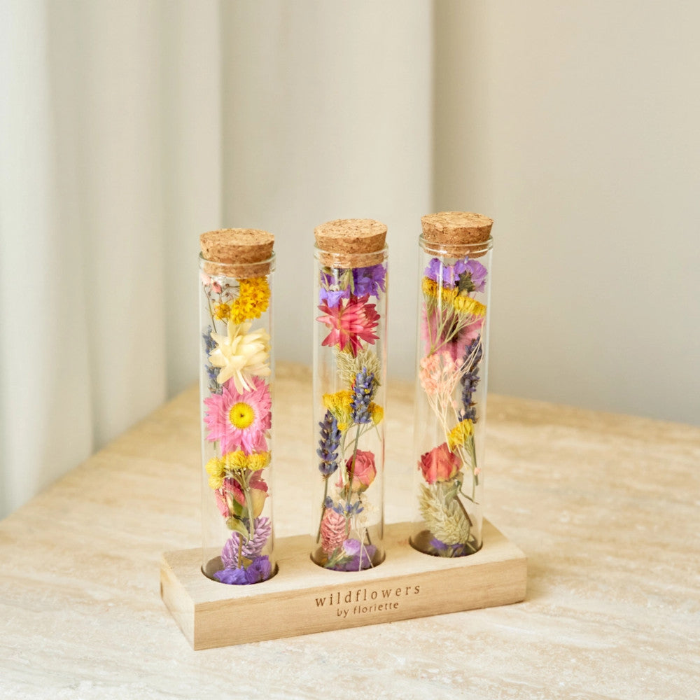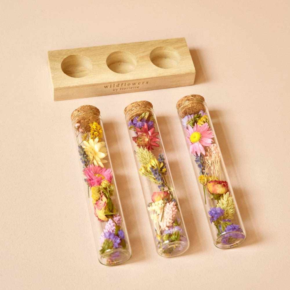 Besondere Geschenkidee: 3 Fläschchen mit Trockenblumen in dekorativer Box