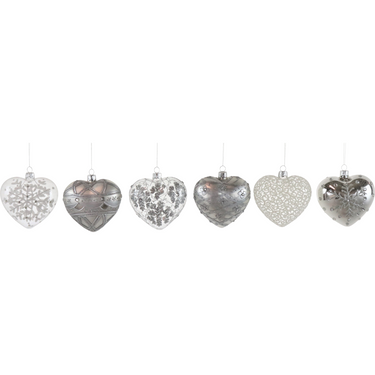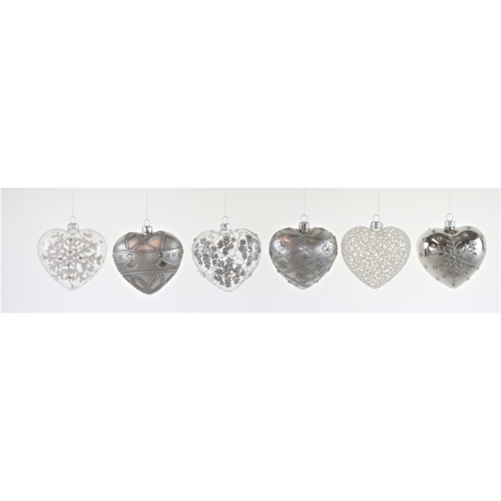Im Set enthalten sind sechs unterschiedlich gefertigte Herzen, jedes einzelne ein kleines Kunstwerk. Mit einer Größe von ca. 8,5 x 9 cm wirken sie präsent, ohne zu dominieren, und harmonieren sowohl mit klassischem Baumschmuck als auch mit modernen Dekorationsideen.