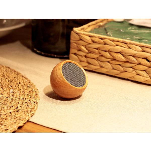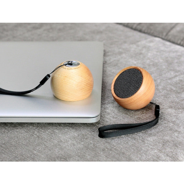 Mini-Lautsprecher aus Kirschholz mit klarem Klang, Selfie-Funktion & bis zu 10 Std. Laufzeit – smart, edel & tragbar.