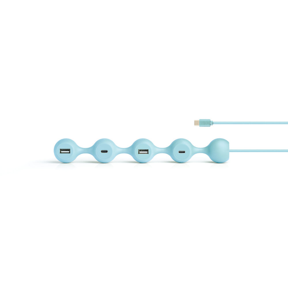 Kompakt, stylisch, unverzichtbar – der Peas Hub-C Light Blue bringt Ordnung und Funktion auf jeden Schreibtisch.