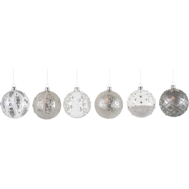 Im Set enthalten sind sechs Glaskugeln, die in ihrer Gestaltung variieren und dadurch ein besonders harmonisches Gesamtbild schaffen. Mit einem Durchmesser von beeindruckenden 7 cm sind die Kugeln groß genug, um echte Eyecatcher am Baum zu sein, ohne dabei überladen zu wirken.