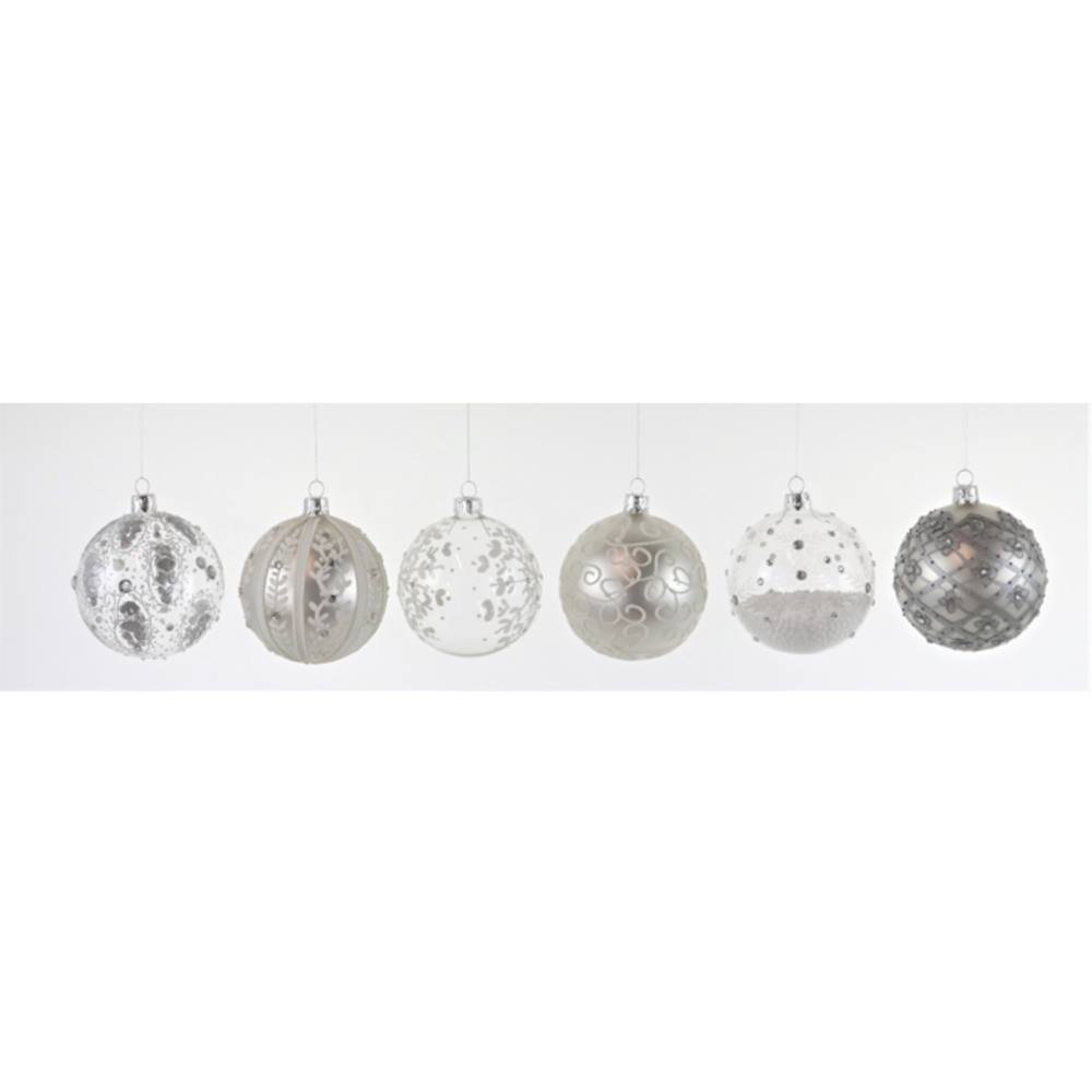 Set mit 6 edlen Glaskugeln (ø 7 cm) in verschiedenen Designs