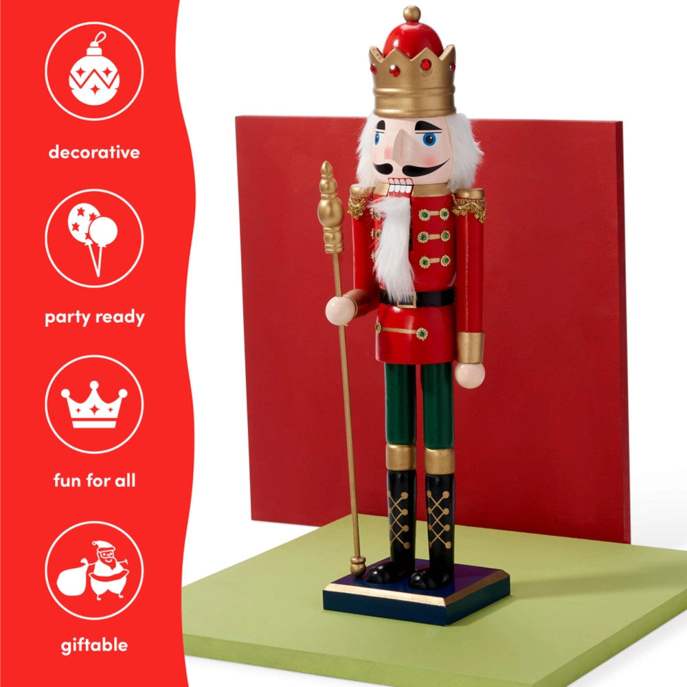 Gefertigt aus robustem Kiefernholz und sorgfältig verarbeitet, überzeugt der Nussknacker mit detailreicher Bemalung und klassischem Design. Mit seinen Maßen von 50 × 11 × 10 cm und einem Gewicht von 1.200 g bringt er Standfestigkeit und Qualität in jedes Wohnzimmer, auf den Kaminsims oder unter den Weihnachtsbaum.