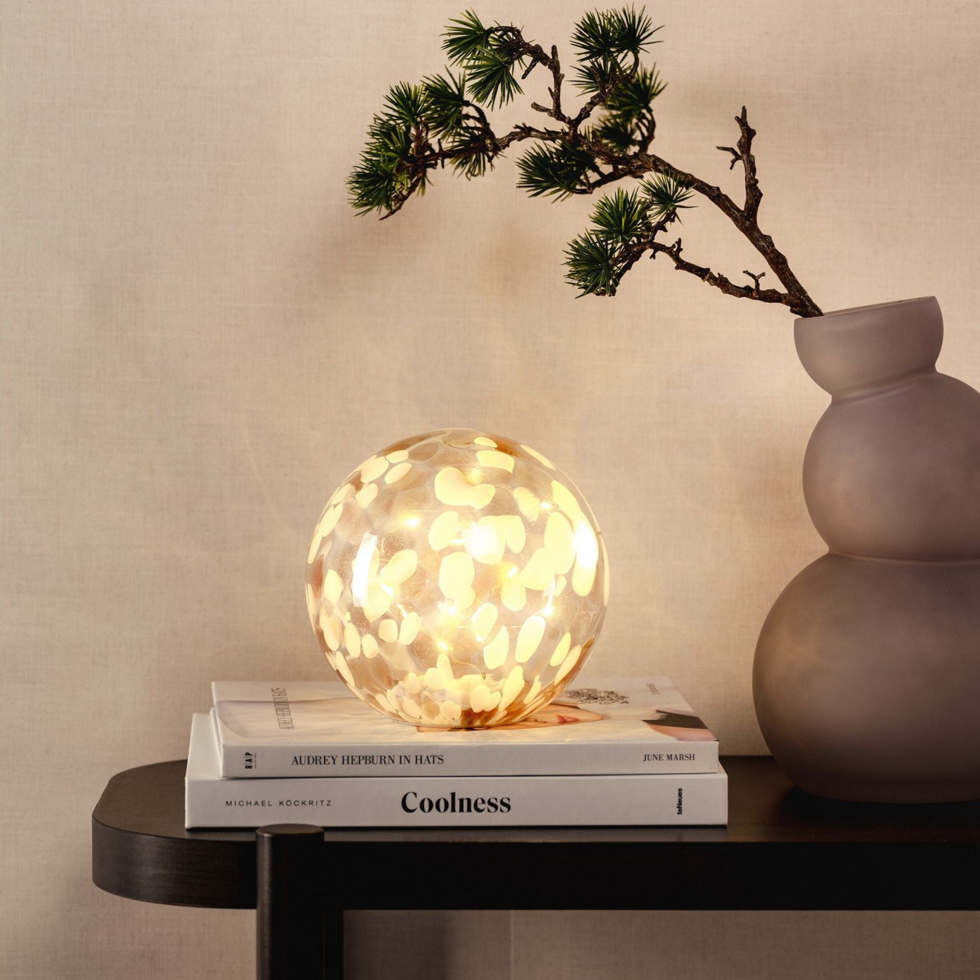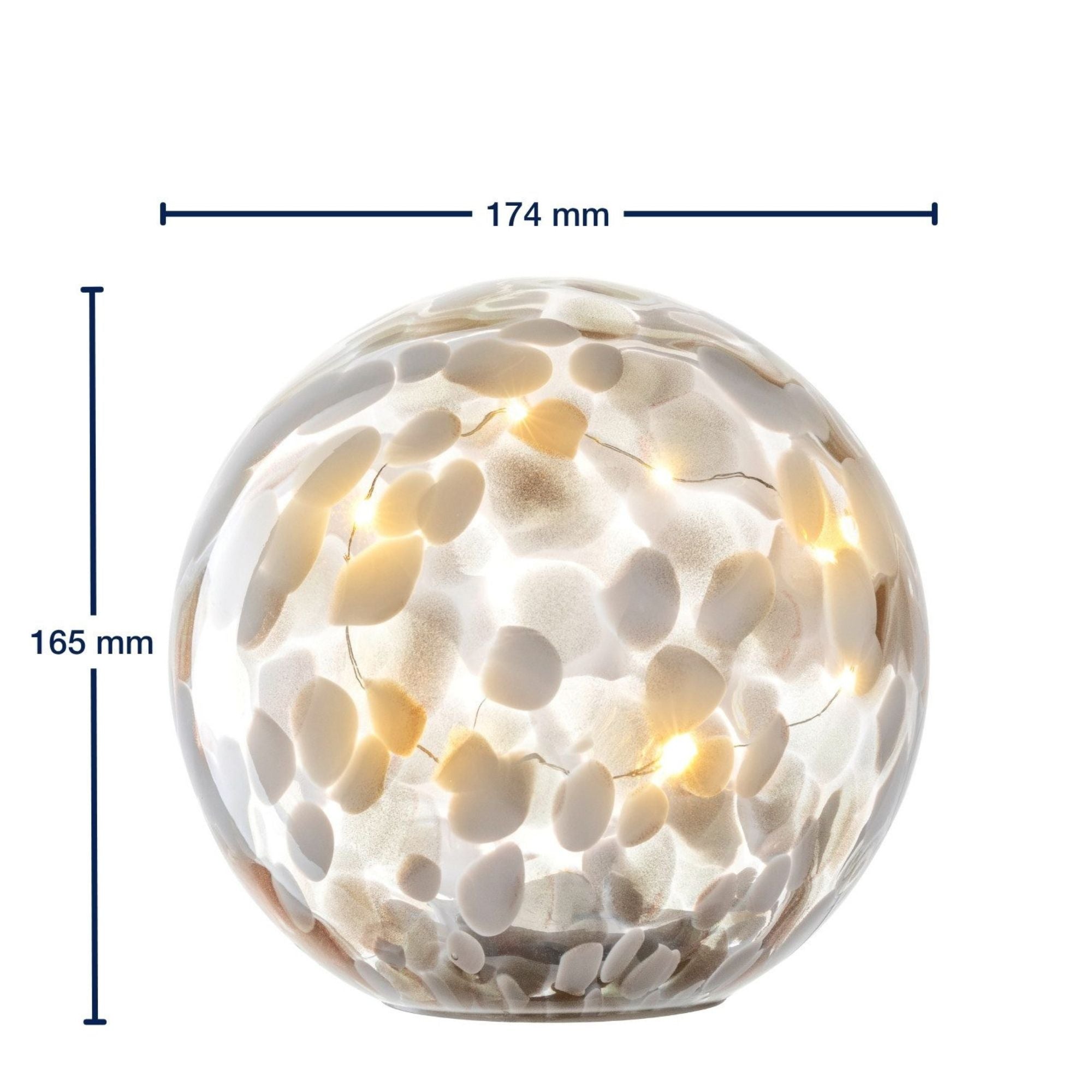 Dekorative LED-Kugel aus Glas mit weißen & goldfarbenen Akzenten