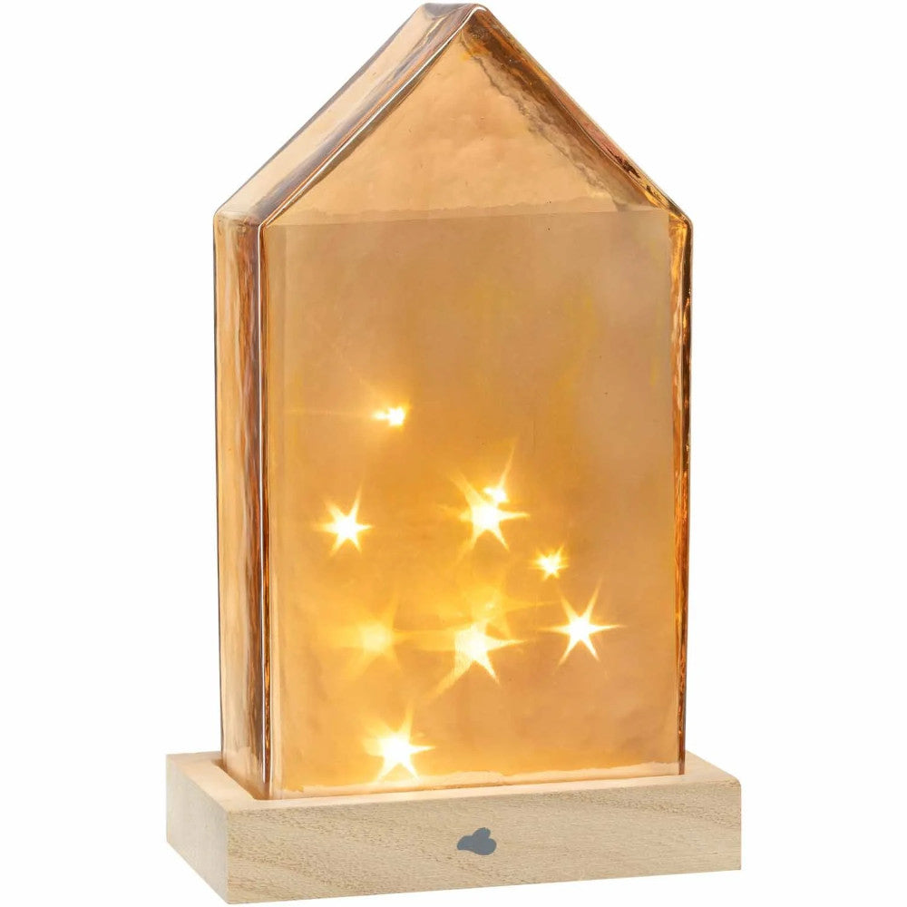 LED-Haus aus Glas & Holz (Serie MAGICO), Maße: 23,4 × 14 × 8,5 cm, Gewicht: 790 g