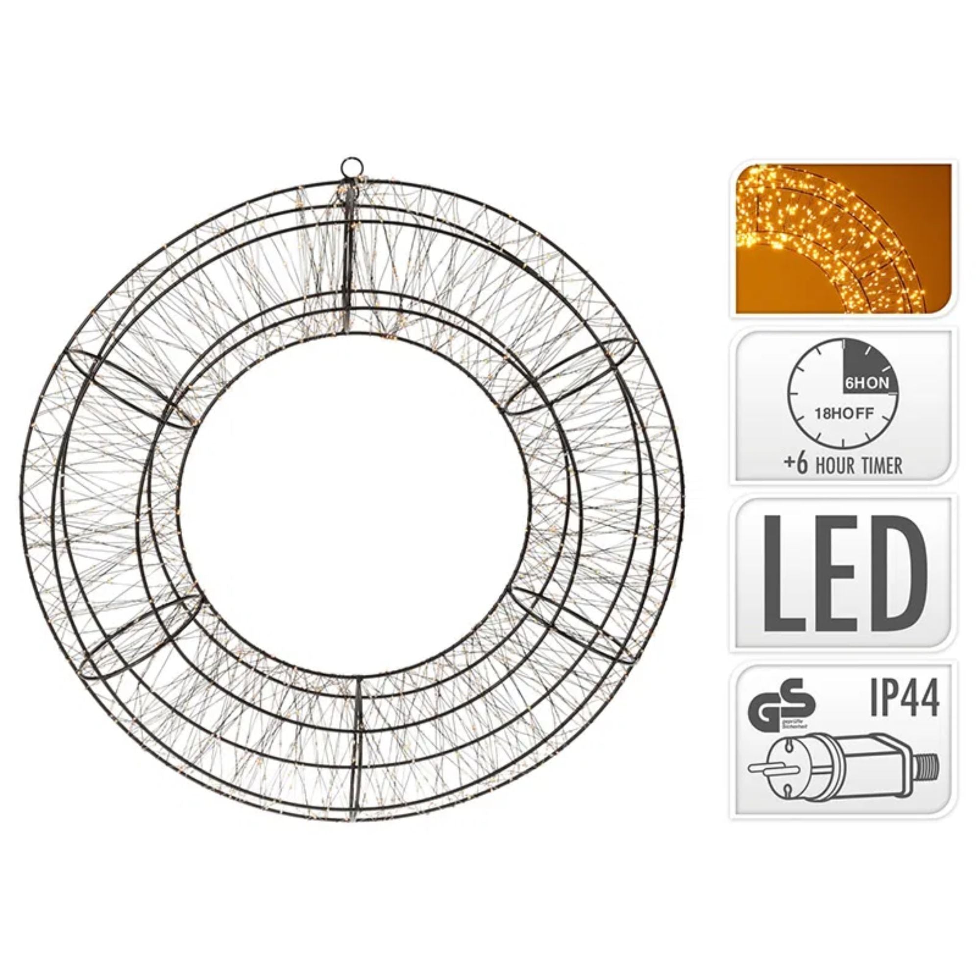 Dank 960 energiesparenden LEDs entfaltet er eine beeindruckende Leuchtkraft, ohne aufdringlich zu wirken. Der integrierte Timer (6 Stunden an / 18 Stunden aus) macht die Handhabung besonders komfortabel – einfach einstellen und genießen. Durch seine IP44-Zertifizierung eignet sich der Kranz sowohl für den Innen- als auch den Außenbereich – ideal für Fenster, Türen, Terrassen oder den Garten. Hergestellt aus hochwertigem Kunststoff, überzeugt der Lichterkranz durch Langlebigkeit und beste Verarbeitung.