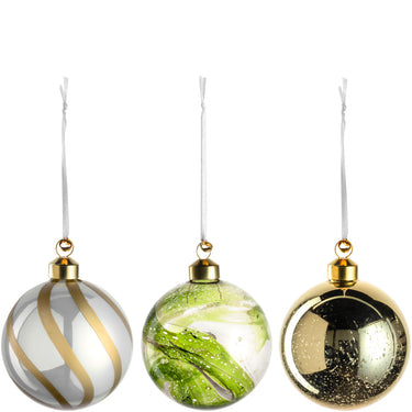 3er-Set Weihnachtskugeln aus Glas (Serie MAGICO), farblich sortiert