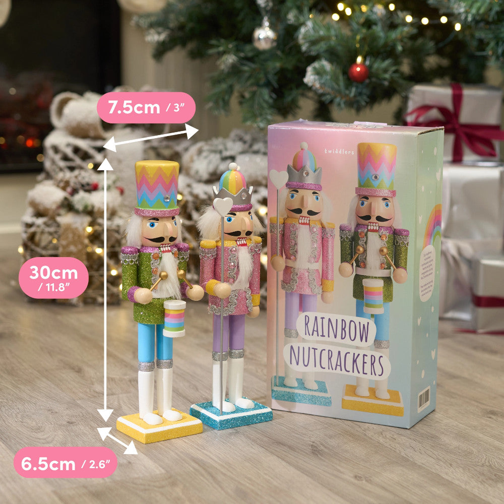 2 Nussknacker-Soldaten aus Holz in Regenbogenfarben • The Twiddlers