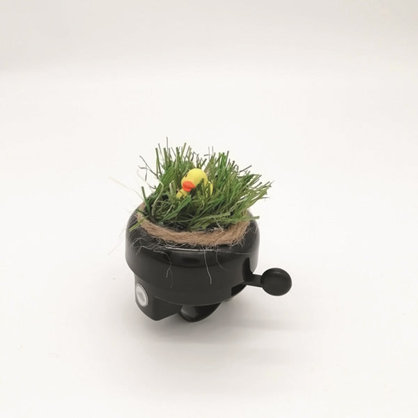 Kreuzen Hindernisse Ihren Weg, meldet sich Helga mit einem fröhlich-entschlossenen „Ring-Ring“, das garantiert nicht zu überhören ist. Eingebettet in ihr grünes Kunstrasen-Nest bleibt sie dank stabiler Zweikomponenten-Kleber-Befestigung auch auf Kopfsteinpflaster, Schotter oder bei schnellen Abfahrten sicher an Ort und Stelle.