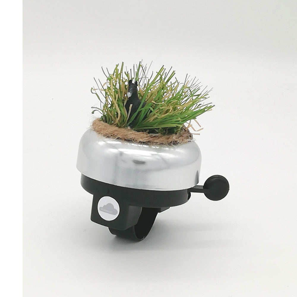 Mit der Fahrradklingel »Pferd Wendy« holen Sie sich 1 PS puren Charme direkt an den Lenker. Wendy, Ihre treue Vierhuf-Begleiterin, steht stolz auf ihrem sattgrünen Kunstrasenteppich und ist bereit für jedes Abenteuer – vom entspannten Ausritt durch den Stadtpark bis zum fröhlichen Galopp über idyllische Landwege.