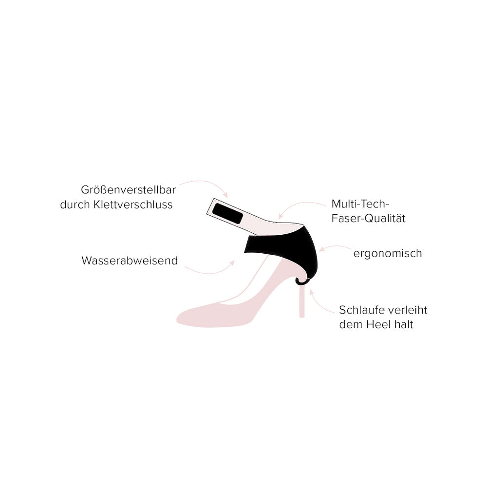 Die Anwendung ist denkbar einfach: HeelStar über den Absatz ziehen, an der Ferse anlegen und den Klettverschluss auf dem Fußrücken fixieren – schon sind Ihre Lieblingsschuhe perfekt geschützt. Dank der ergonomischen Form und der hochwertigen, wasserabweisenden Multi-Tech-Faser passt sich HeelStar jeder Schuhform optimal an.