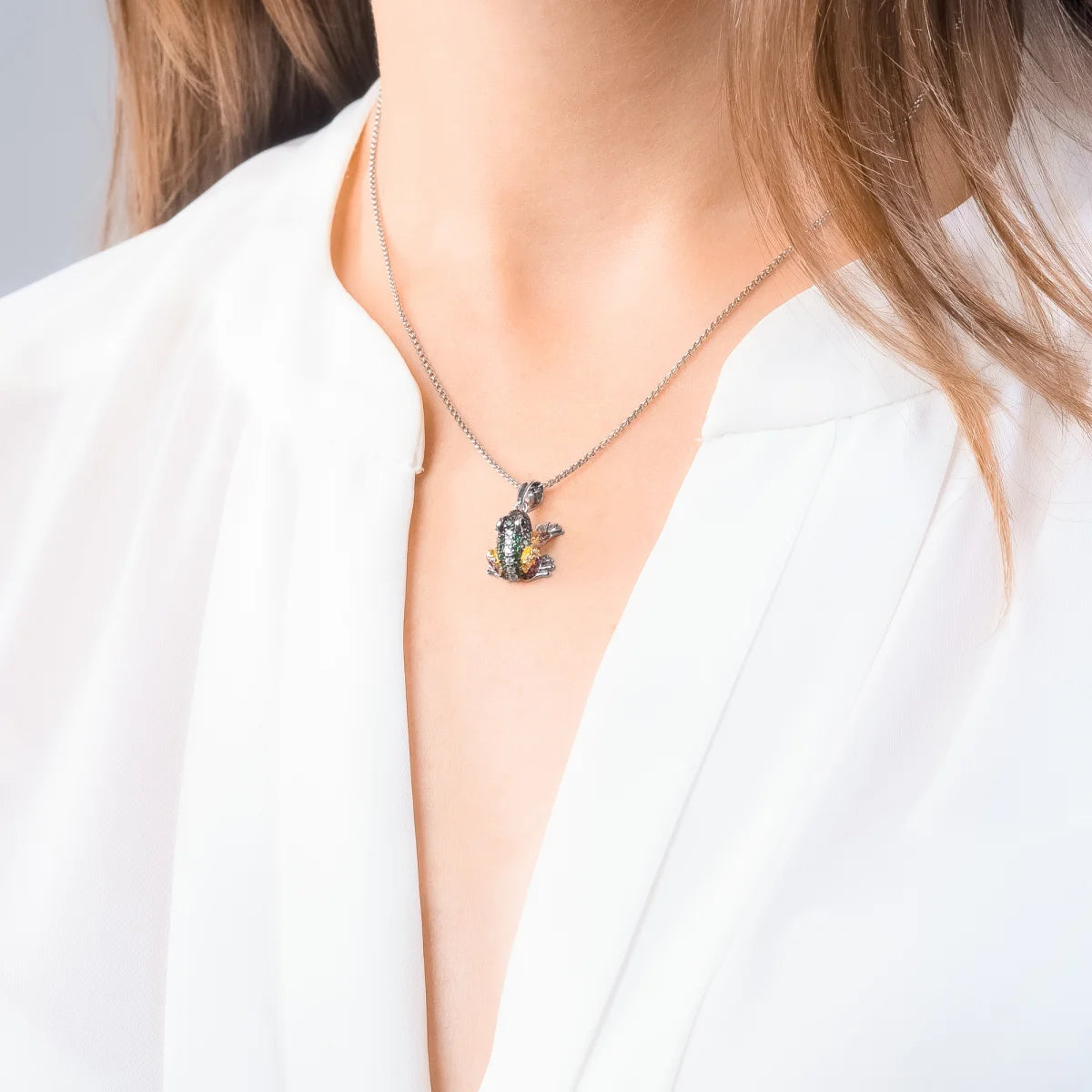Der Freddy Frosch Anhänger bringt pure Lebensfreude an Ihre Kette! Dieses bezaubernde Schmuckstück aus 925 Sterling Silber wurde mit viel Liebe zum Detail gefertigt und vereint hochwertiges Design mit verspieltem Charme. Die sorgfältige Kombination aus rhodiniertem, geschwärztem und vergoldetem Silber sorgt für eine außergewöhnliche Tiefenwirkung – so wirkt der kleine Frosch beinahe lebendig.