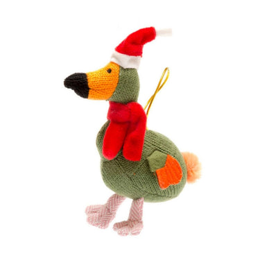 Gestrickte Dodo-Weihnachtsdekoration mit Weihnachtsmütze und Schal • Best Years Ltd