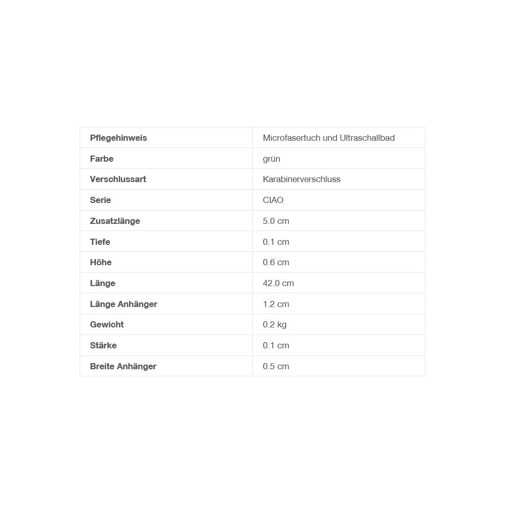 Der Blickfang dieser Halskette ist der facettierte, mintgrüne Glaskristall, der opak schimmert und mit jedem Outfit stilvolle Akzente setzt. Ob als zarter Begleiter im Alltag oder als funkelndes Detail am Abend – „Sofia“ passt sich flexibel Ihrem Stil an. Dank des Karabinerverschlusses mit Verlängerung lässt sich die Kette individuell anpassen und sitzt immer perfekt.