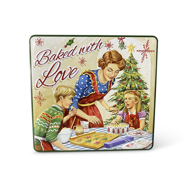 Nostalgische Keksdose „Baked with Love green“ im Retro-Look – detailreich geprägt und perfekt für Weihnachtsplätzchen.