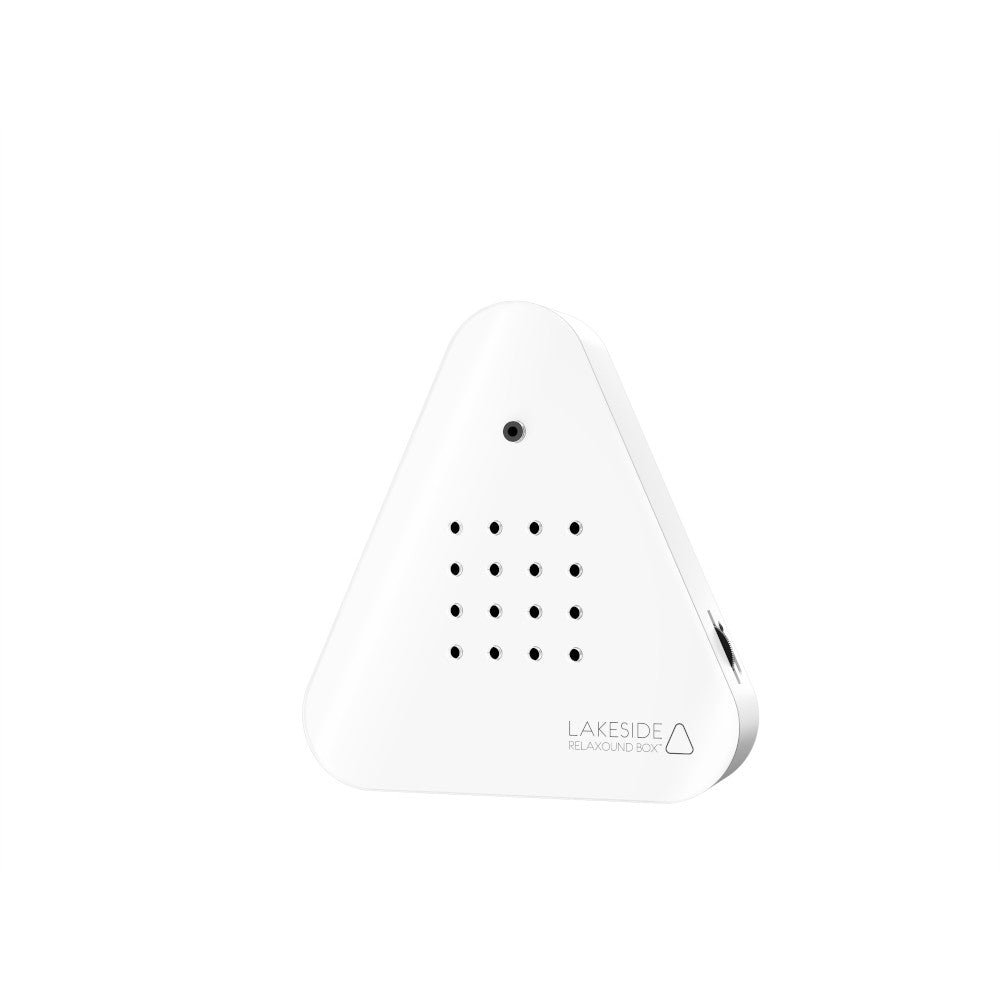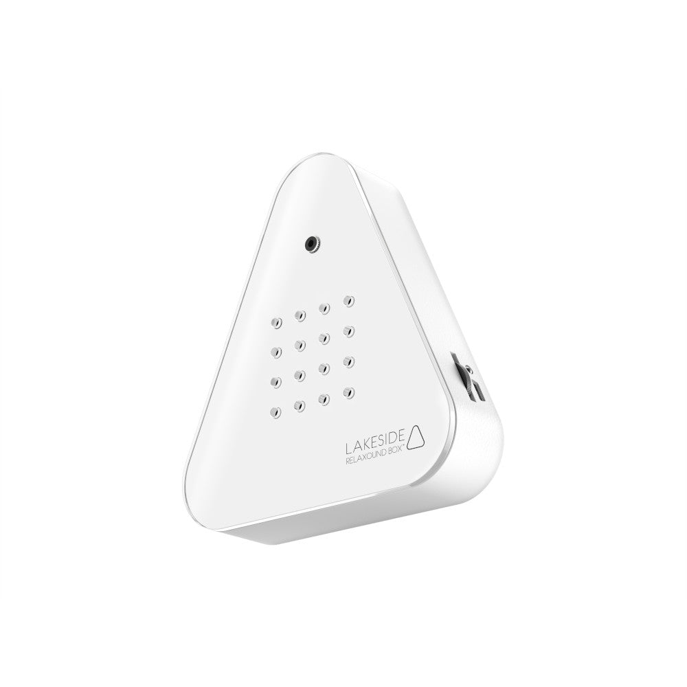 Das moderne Dreiecks-Design in Weiß fügt sich stilvoll in jedes Interieur ein, während die handliche Größe und der wiederaufladbare Akku für maximale Flexibilität sorgen. Eine Hörprobe der beruhigenden Naturklänge finden Sie unter dem Punkt „Download Produktinformationen“.