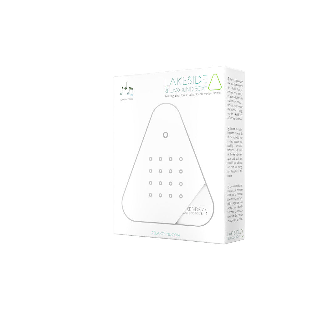 Per Bewegungsmelder wird die Soundkulisse automatisch aktiviert und begleitet Sie für zwei Minuten in eine Oase der Ruhe. Ob beim Arbeiten, Meditieren oder einfach zum Durchatmen – die Lakesidebox schafft einen Moment zum Abschalten, wann immer Sie ihn brauchen.