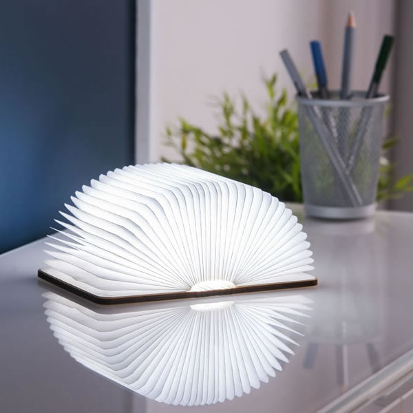 Das SMART BOOK LIGHT MINI von Gingko ist mehr als nur eine Leuchte – es ist ein echtes Designobjekt in Buchform. Mit seinem Einband aus natürlichem Ahornholz und den kunstvoll verarbeiteten, weißen Tyvek-Seiten entfaltet es beim Aufklappen einen magischen Lichteffekt, der jede Umgebung verzaubert.