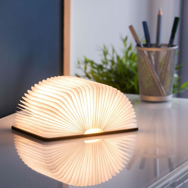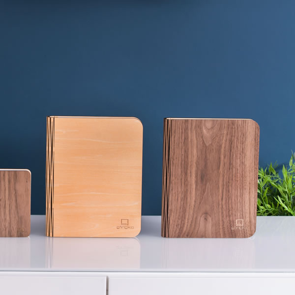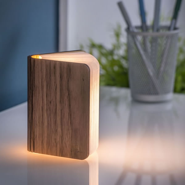 Einzigartig & stilvoll – die Smart Book Light Mini in Walnuss verzaubert mit warmem Licht und natürlicher Eleganz.