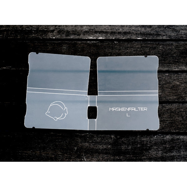 ① Lege den Maskenfalter flach auf den Tisch, der Fisch muss unten rechts sein.