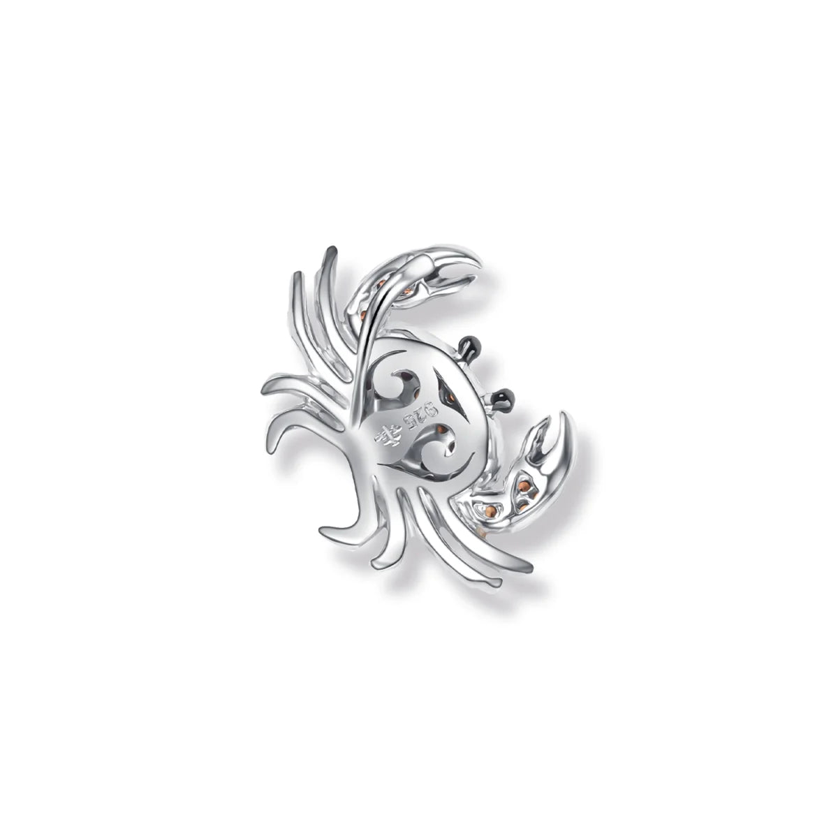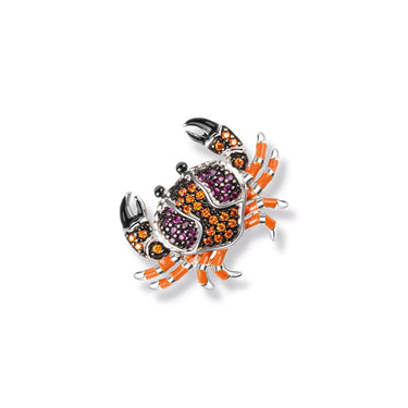 Die raffinierte Kombination aus geschwärztem und rhodiniertem Silber sorgt für spannende Kontraste und langlebigen Glanz. Strahlende Emaille in Schwarz und Orange lässt den Krebs geradezu lebendig wirken, während mehrfarbige Zirkonia Steine wie glitzernde Wassertropfen schimmern und bei jeder Bewegung funkelnde Highlights setzen.